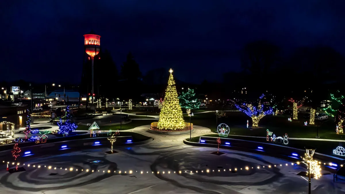 Downtown Monroe’s festive holiday lighting, caroling, Santa appearance, and family cheer.